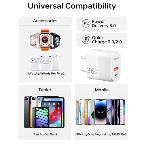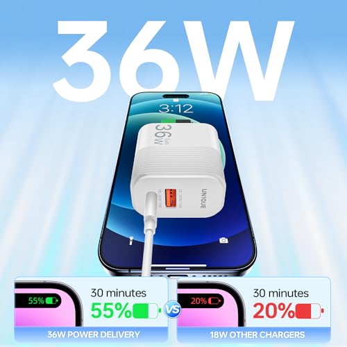 GaN II Tech: This UN1QUE 36W type c charger optimizes your charging experience with GaN II technology, it is smaller and more compact and gives you even more power.