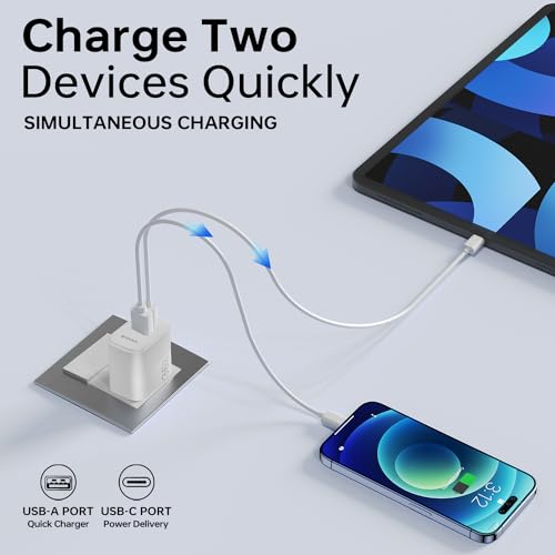 2 Port Fast Charging: When powering 2 devices at the same time, the USB C port can provide up to 15W, and the USB A port can provide up to 15W.2 Port devices, like iPhone, iWatch, Samsung Galaxy, and more.