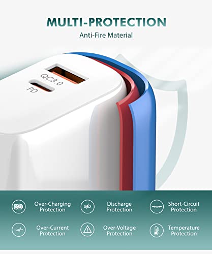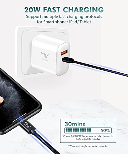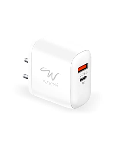 【Dual Port Fast Charging Charger】: Unlike other chargers have a single charging port, Wayona Fast Charging Adapter is designed with dual ports with fast charging, USB C port and USB A port to meet your different demands. Charge iPhone 12 up to 50% in 30 minutes.
