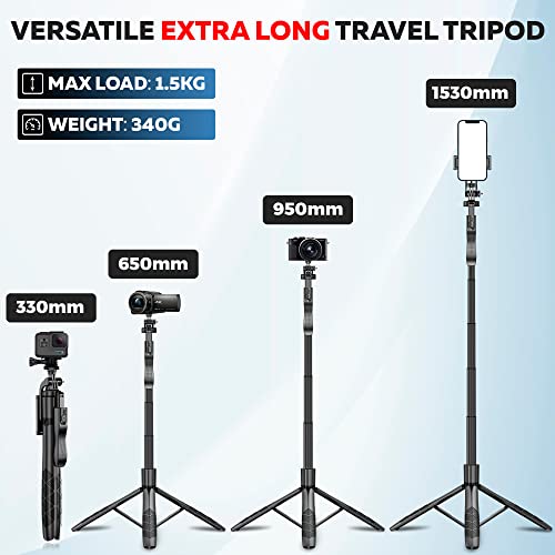Compact and Travel-Friendly: Our Long Selfie Stick folds to just 12 inches, easily fitting into your bag or backpack without taking up much space, This Tripod Stand is perfect for Traveling, Hiking, and Camping.