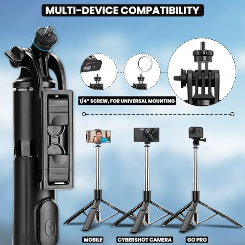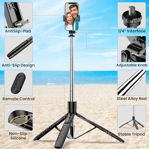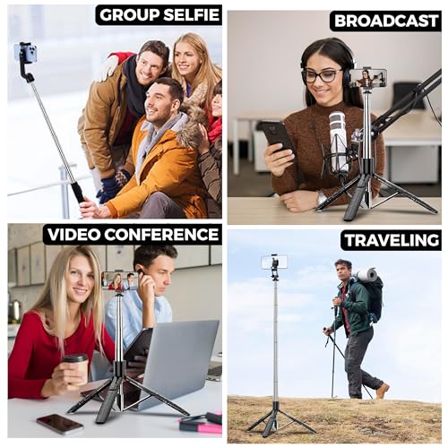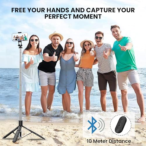 Tripod with Bluetooth remote : Liberate your hands and enjoy taking pictures with detachable remote control . It will keep stable up to 33ft / 10m and is compatible with most smartphones such as Android and iPhone.
