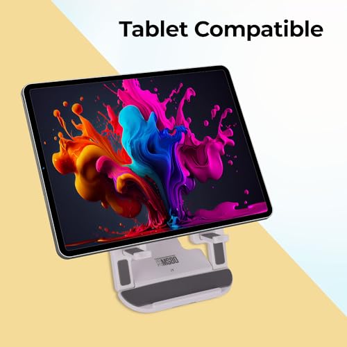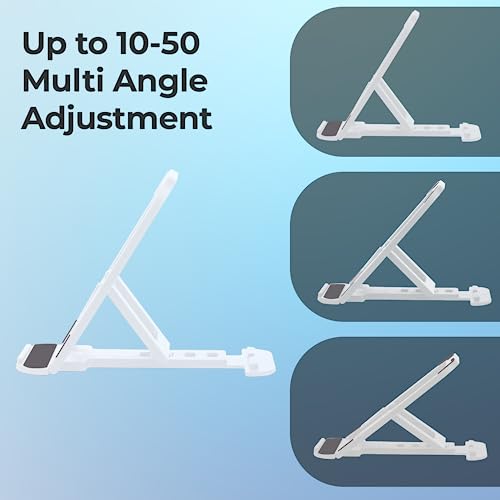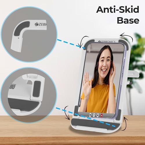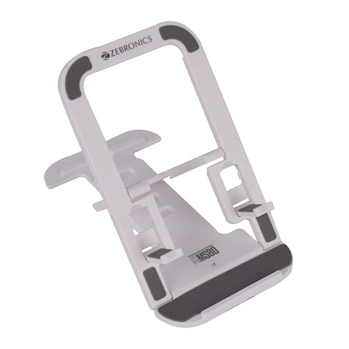 ZEBRONICS MS80 Mobile Holder with Adjustable Height, 10°- 50° Multiangle Adjustment, Foldable Design, Anti Skid Base, Matte Finish, Lightweight and 4 Adjustable Levels (White)